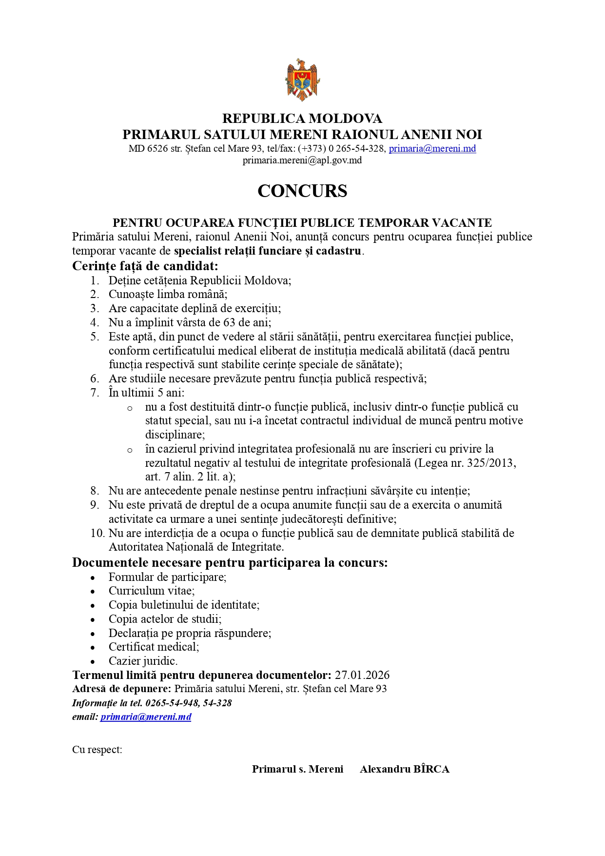 CONCURS PENTRU OCUPAREA FUNCŢIEI PUBLICE TEMPORAR VACANTE