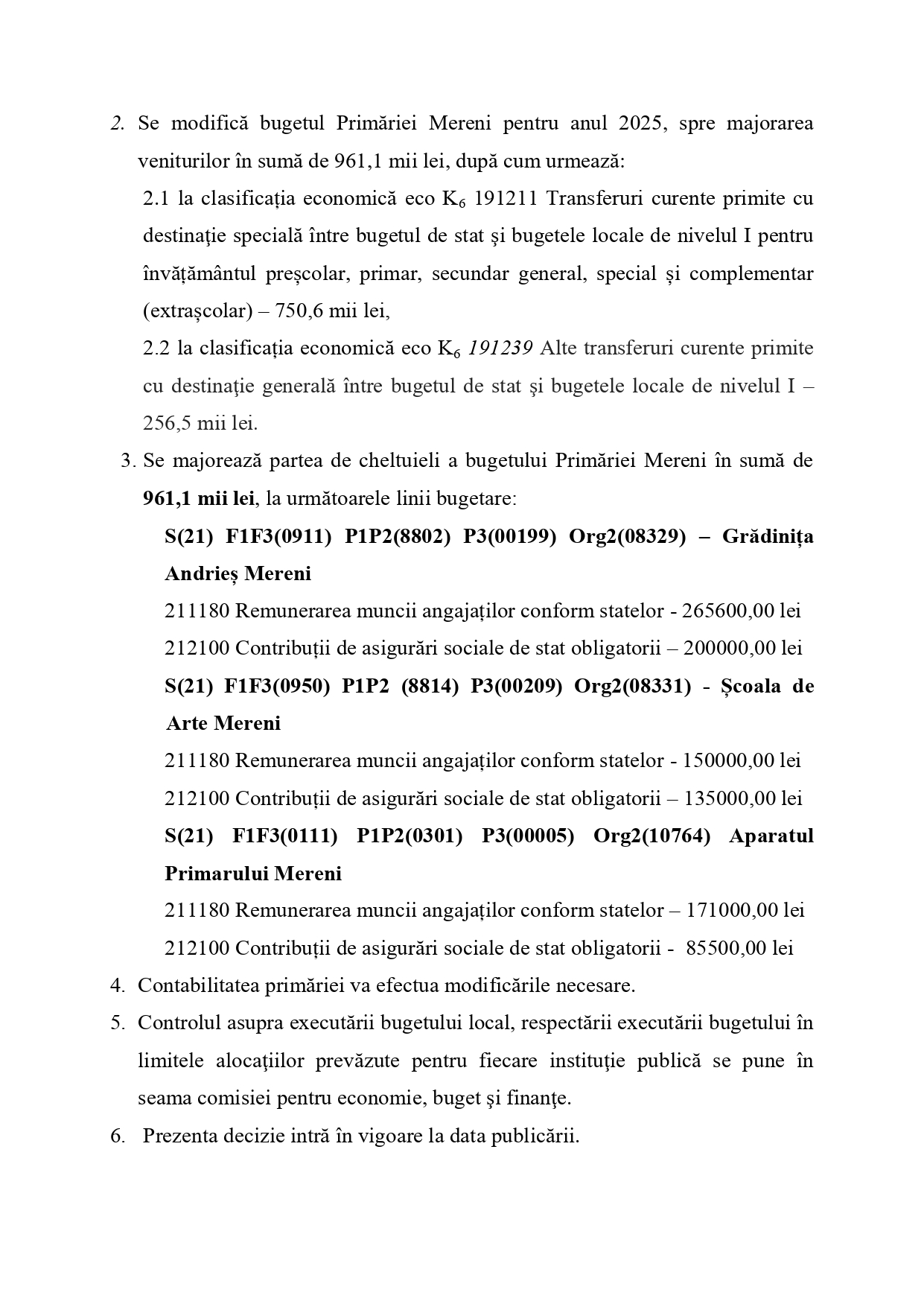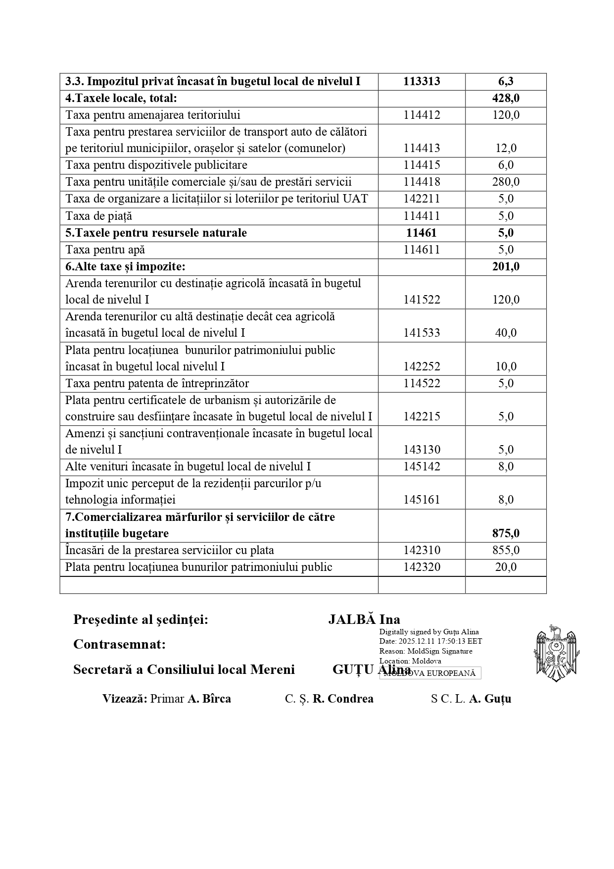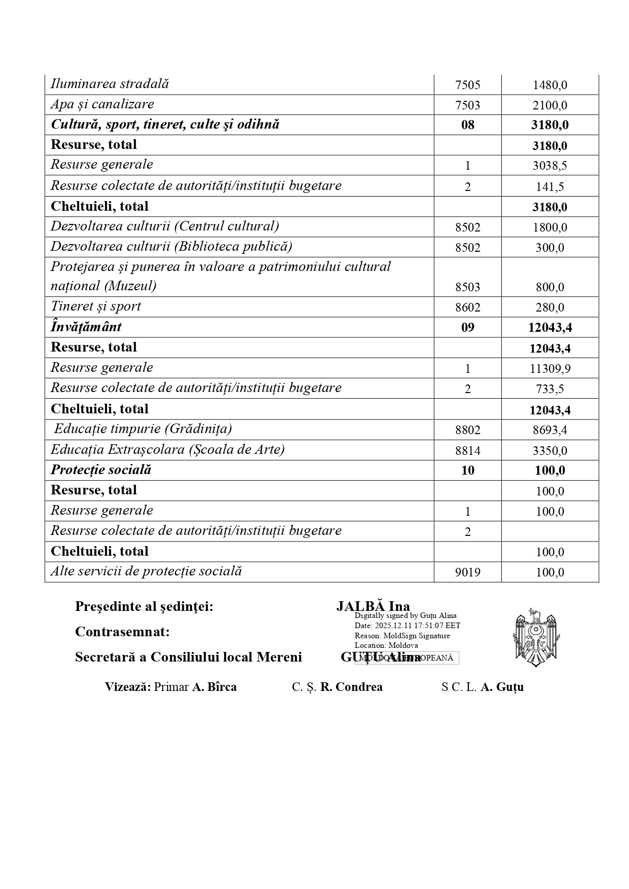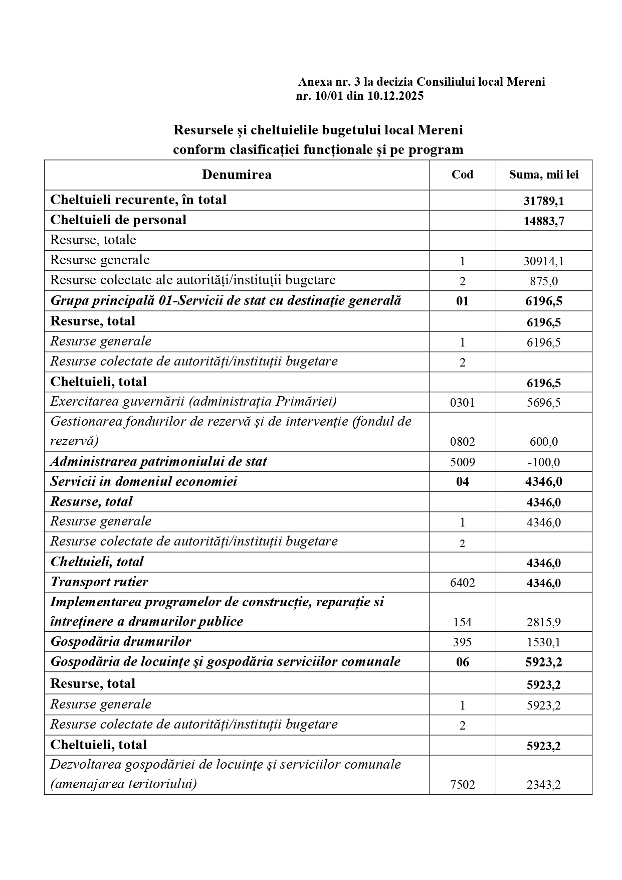 Decizia nr. 10/01 din 10.12.2025 Cu privire la corelarea bugetului local pentru anul 2025