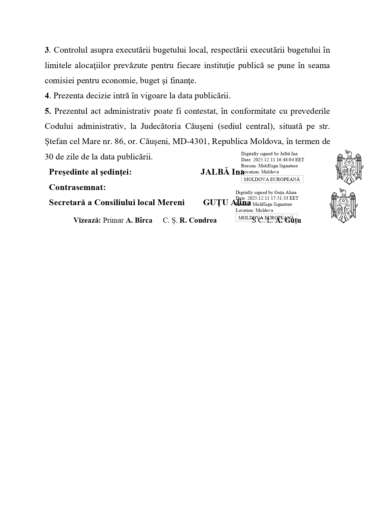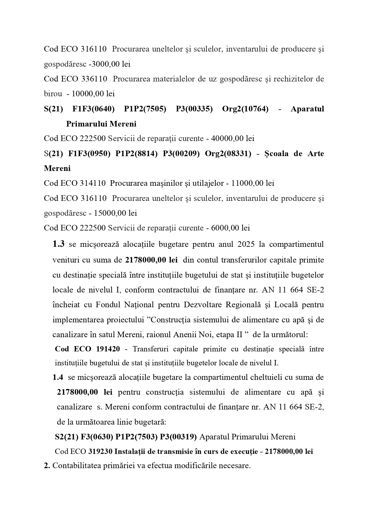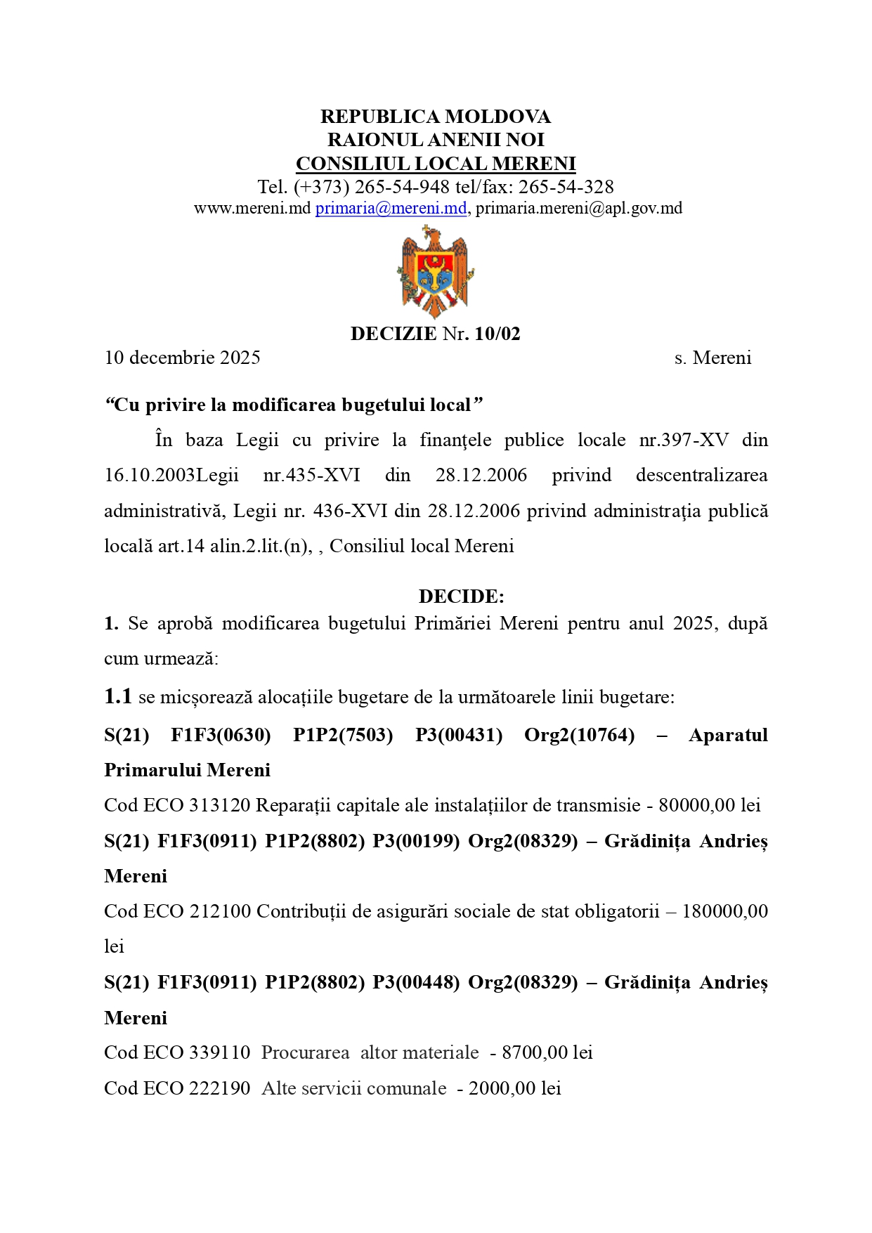 Decizia nr. 10/02 din 10.12.2025 Cu privire la modificarea bugetului local