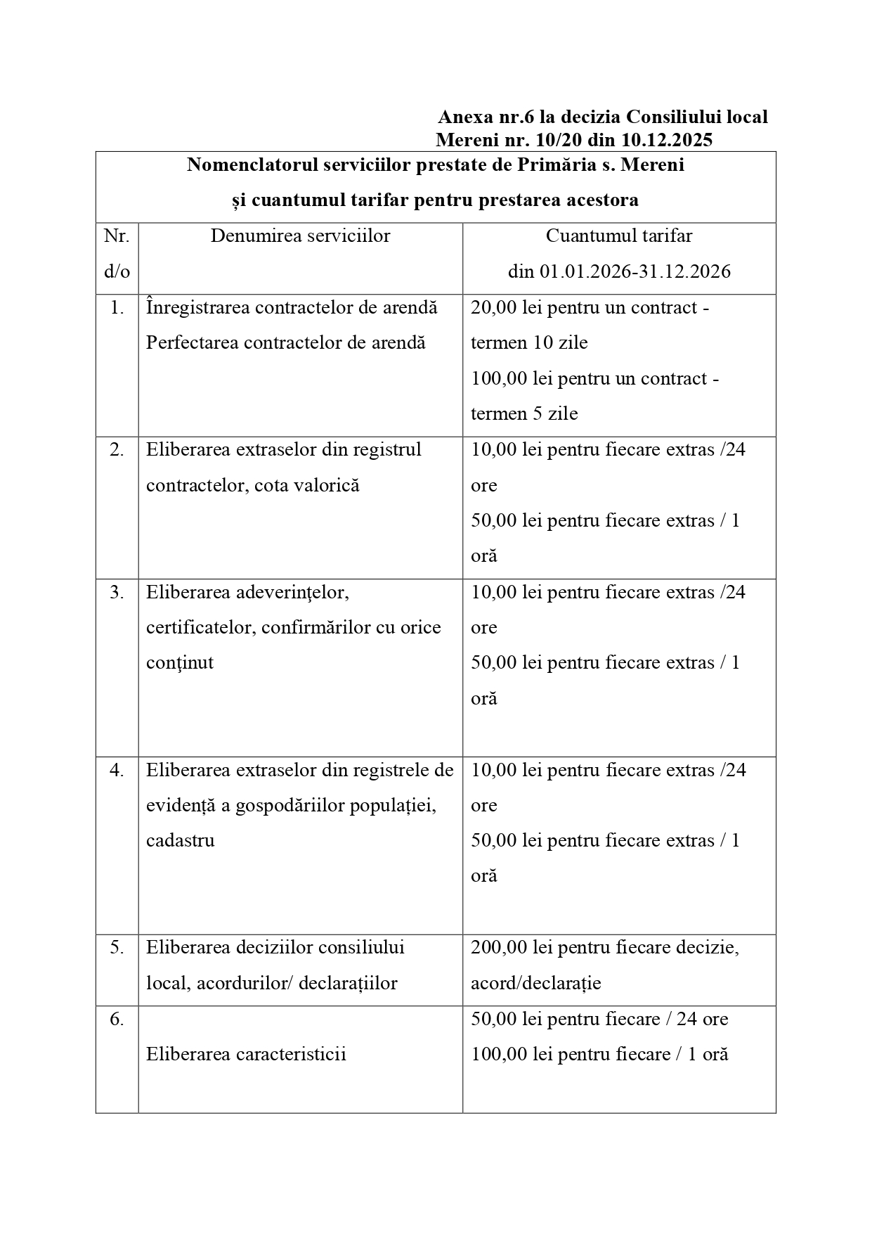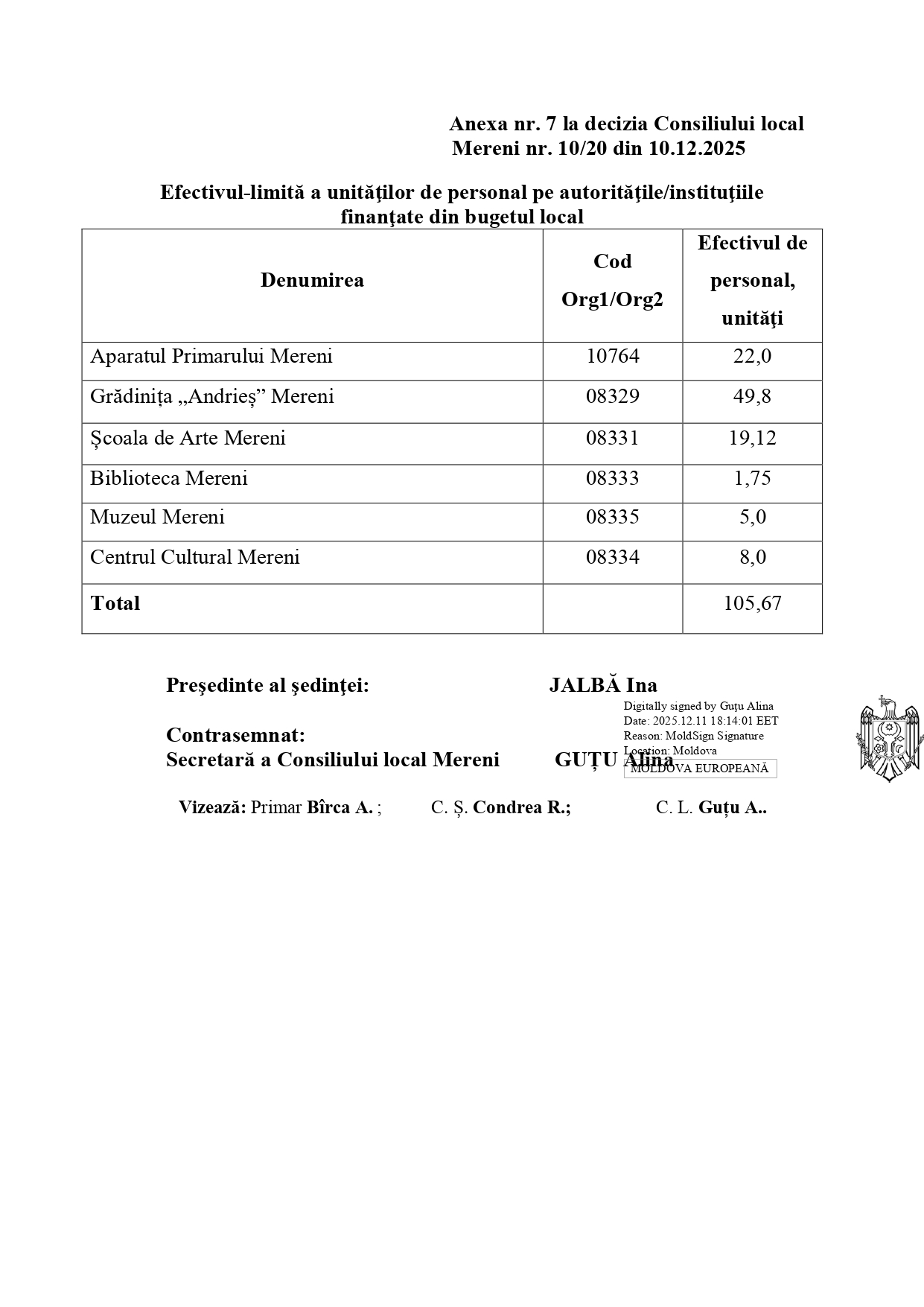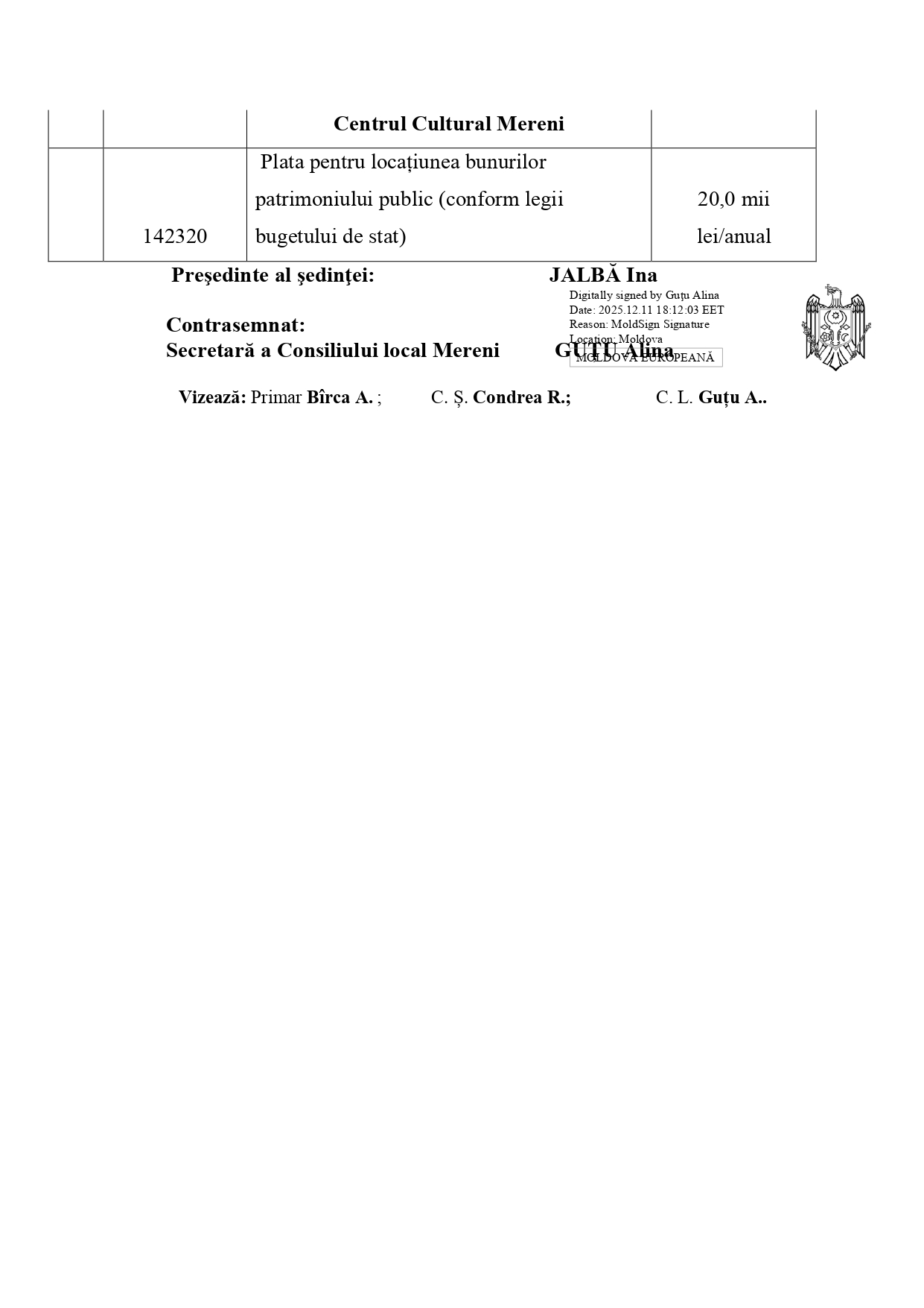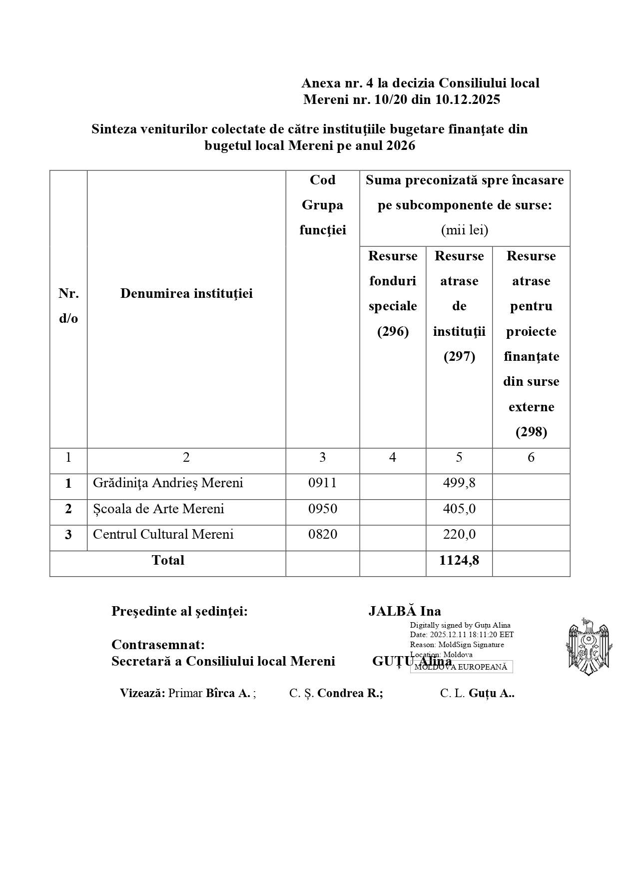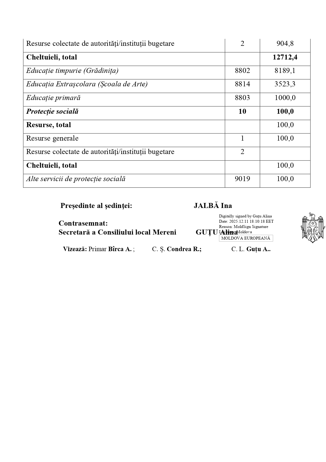 Decizia nr. 10/20 din 10.12.2025 Cu privire la aprobarea bugetului local Mereni pentru anul 2026 în a doua lectură